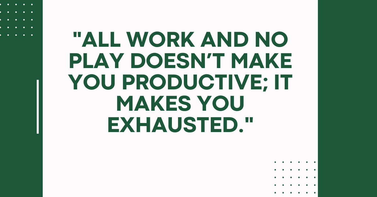 - “All work and no play doesn’t make you productive; it makes you exhausted.”