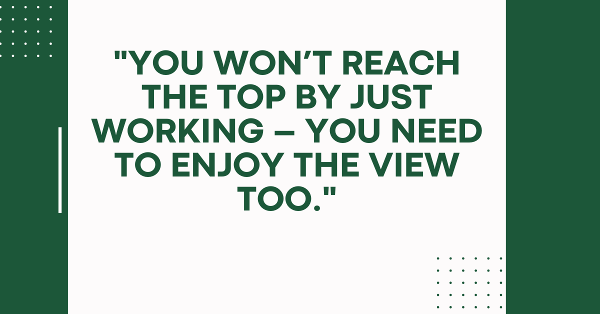 - “You won’t reach the top by just working – you need to enjoy the view too.”