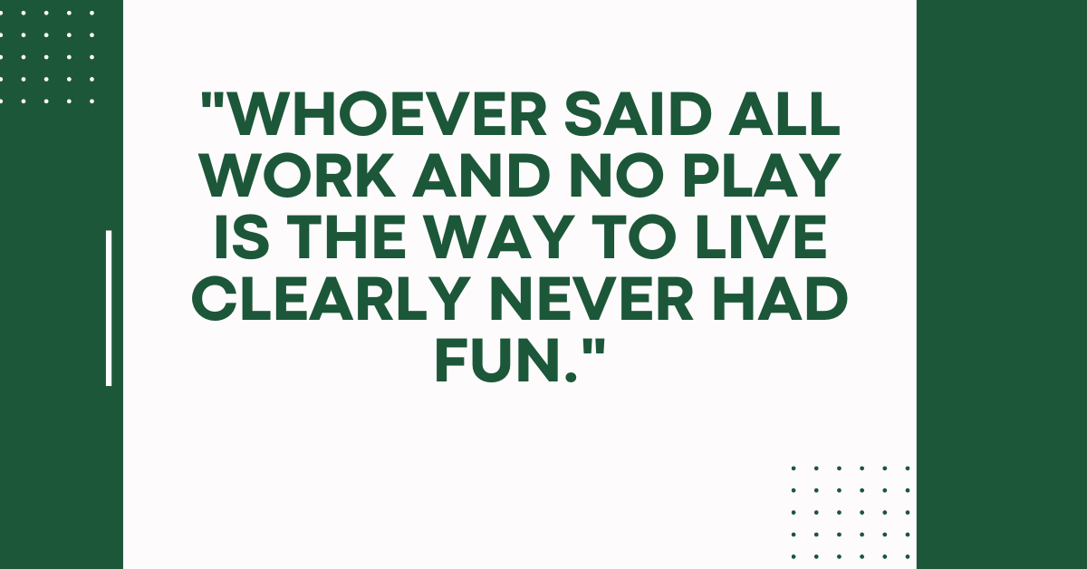 - “Whoever said all work and no play is the way to live clearly never had fun.”