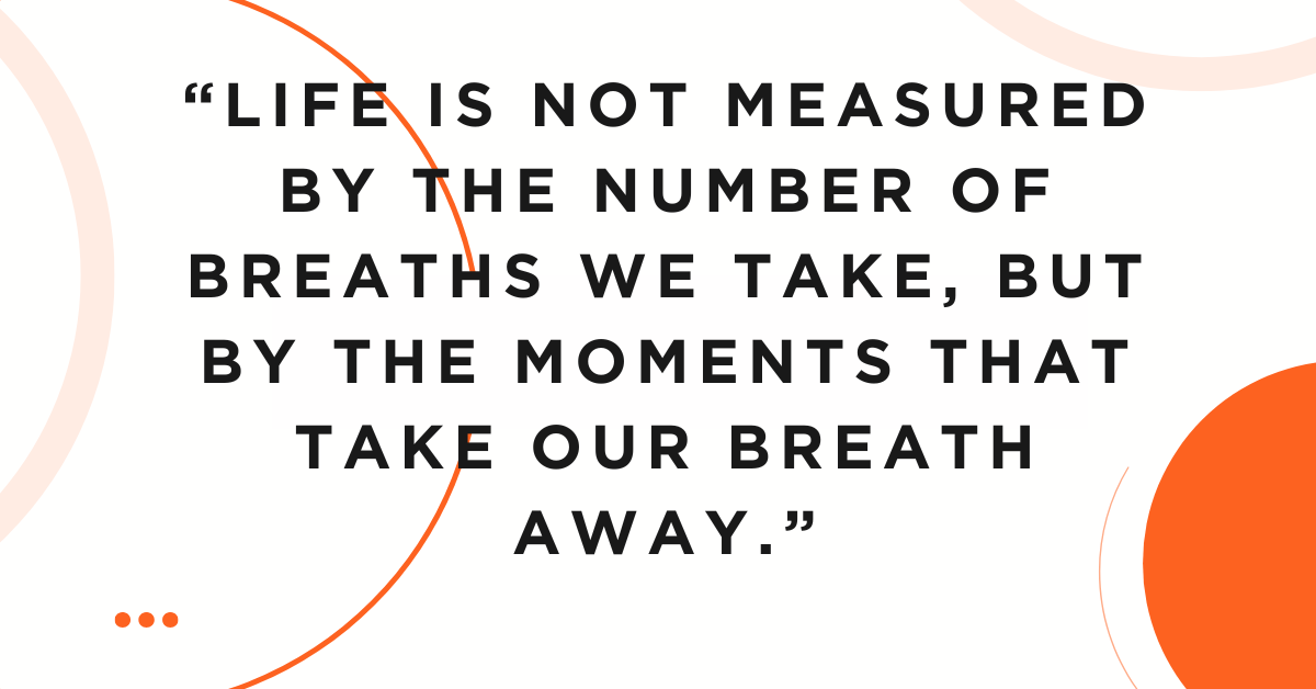- “Life is not measured by the number of breaths we take, but by the moments that take our breath away.”