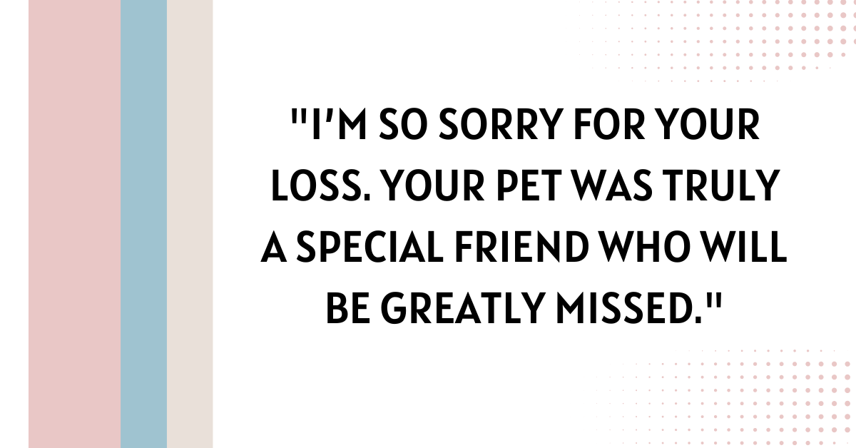 1. “I’m so sorry for your loss. Your pet was truly a special friend who will be greatly missed.”