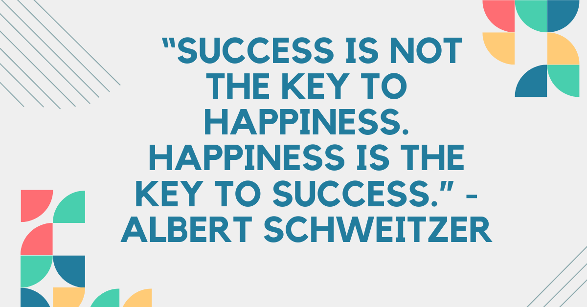 2. “Success is not the key to happiness. Happiness is the key to success.” – Albert Schweitzer