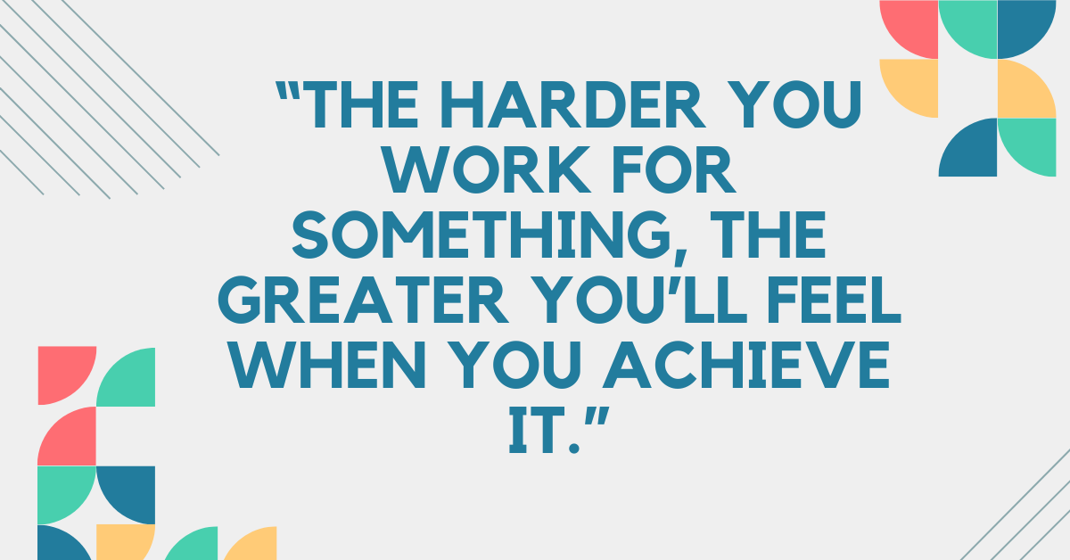 13. “The harder you work for something, the greater you’ll feel when you achieve it.”