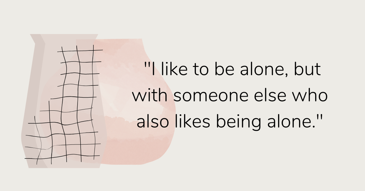 8. “I like to be alone, but with someone else who also likes being alone.”