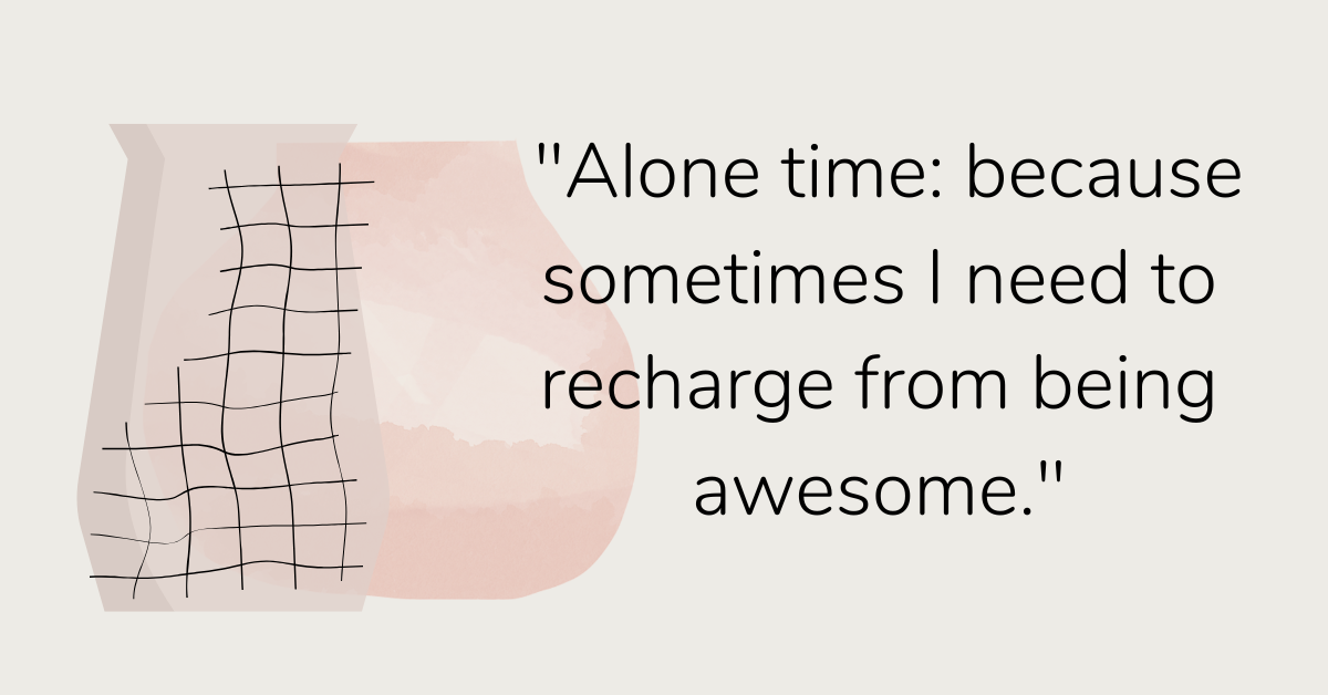 24. “Alone time: because sometimes I need to recharge from being awesome.”