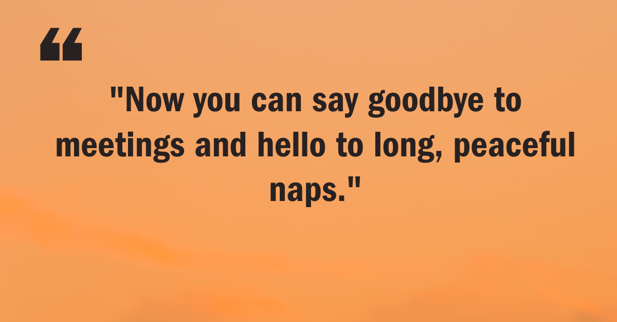 17. “Now you can say goodbye to meetings and hello to long, peaceful naps.”