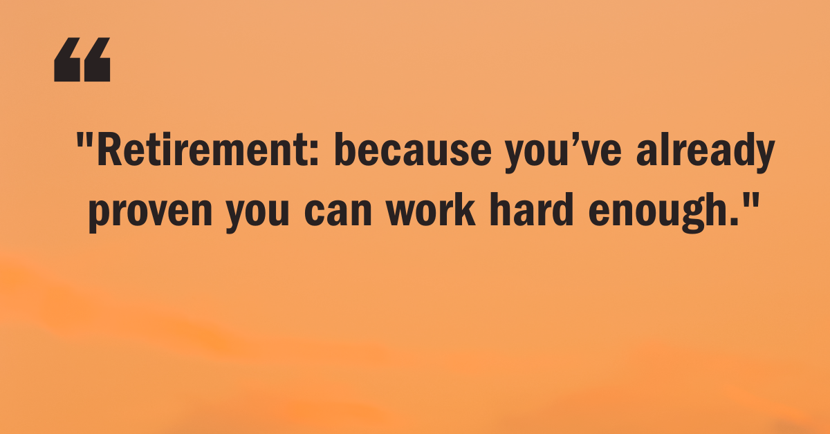 26. “Retirement: because you’ve already proven you can work hard enough.”