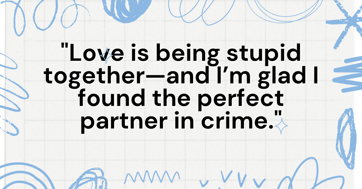 - “Love is being stupid together—and I’m glad I found the perfect partner in crime.”
