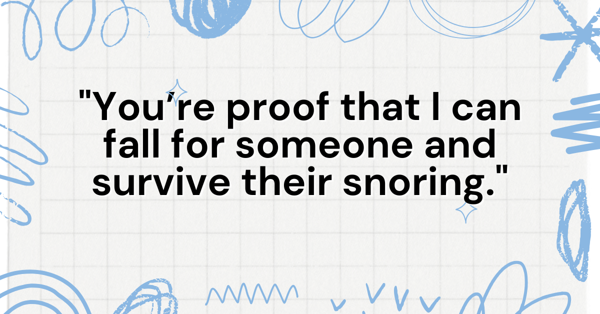- “You’re proof that I can fall for someone and survive their snoring.”