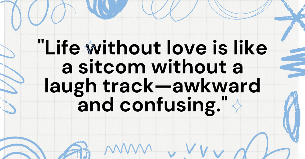 - “Life without love is like a sitcom without a laugh track—awkward and confusing.”