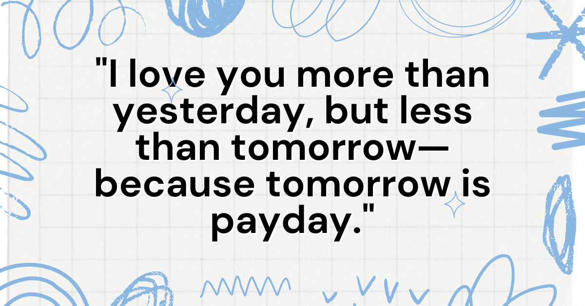 - “I love you more than yesterday, but less than tomorrow—because tomorrow is payday.”