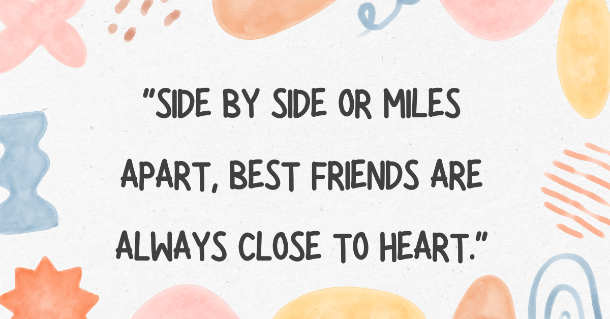 9. “Side by side or miles apart, best friends are always close to heart.”