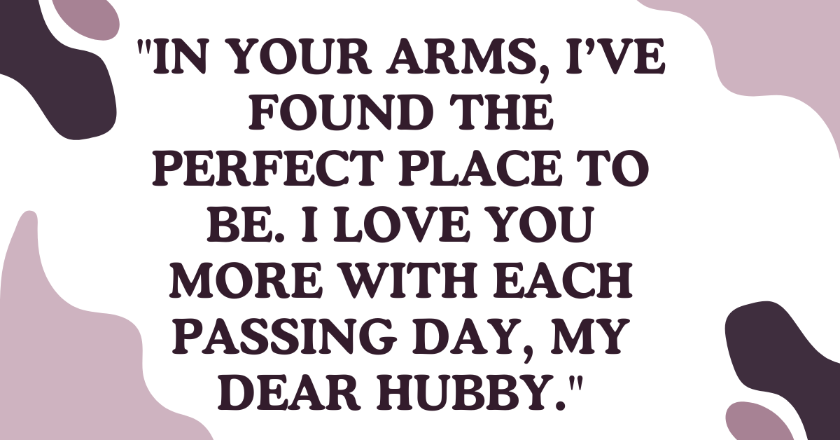 - “In your arms, I’ve found the perfect place to be. I love you more with each passing day, my dear hubby.”