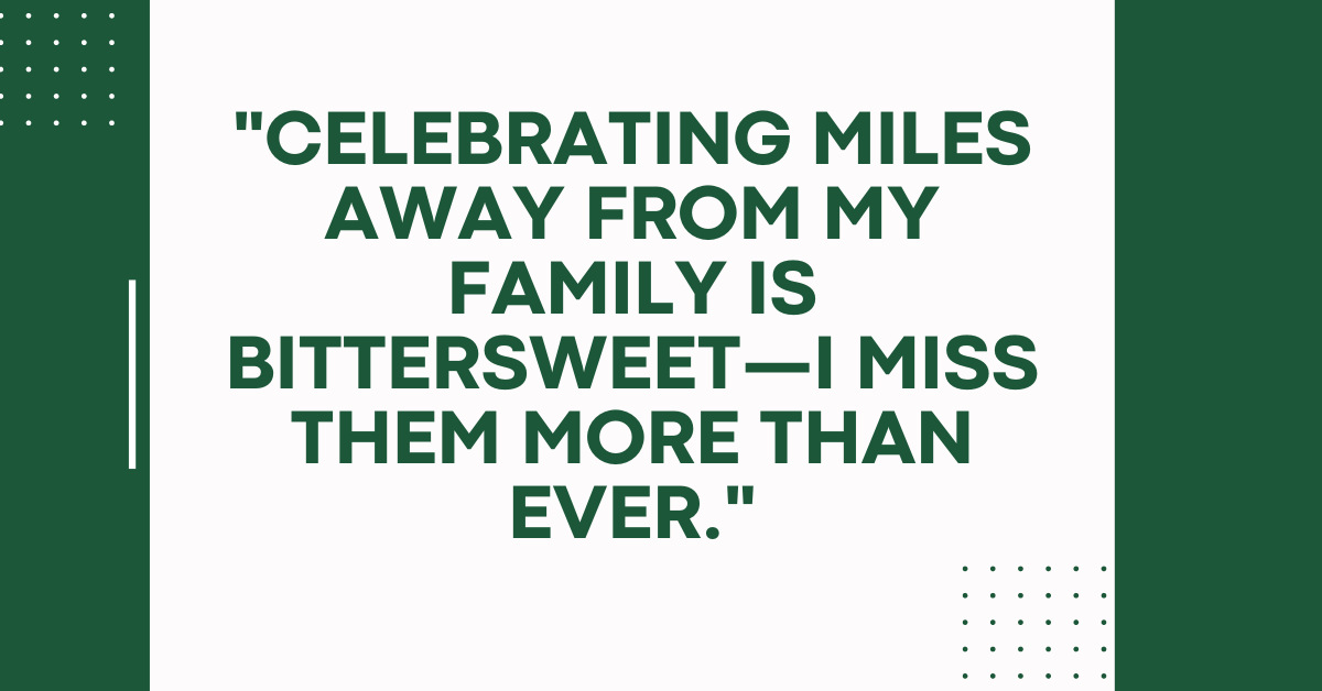 17. “Celebrating miles away from my family is bittersweet—I miss them more than ever.”