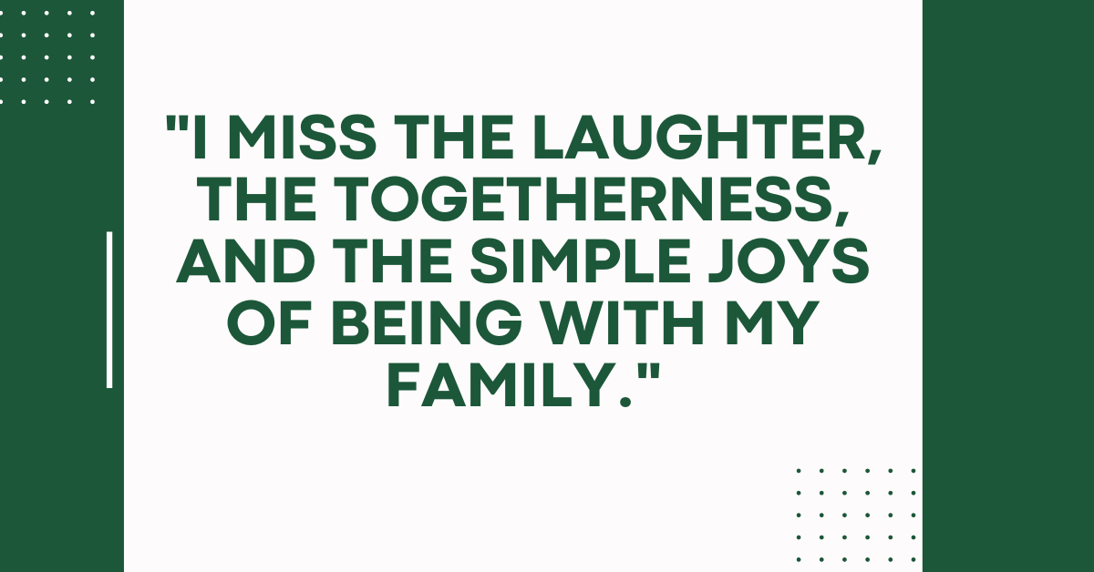 27. “I miss the laughter, the togetherness, and the simple joys of being with my family.”