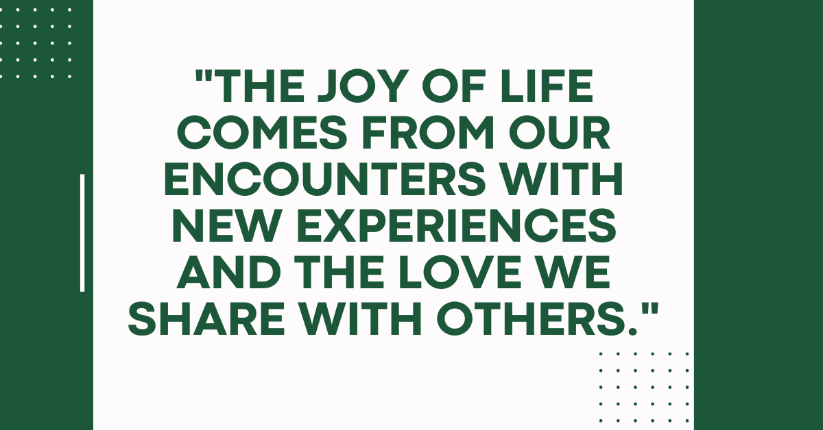11. “The joy of life comes from our encounters with new experiences and the love we share with others.”