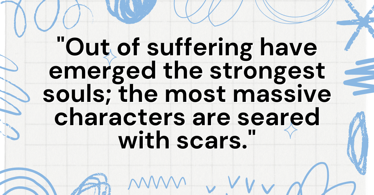 - “Out of suffering have emerged the strongest souls; the most massive characters are seared with scars.”