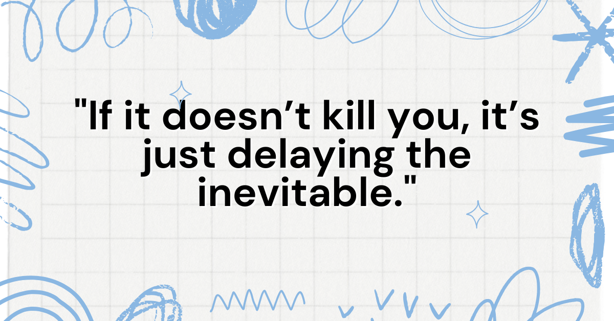 - “If it doesn’t kill you, it’s just delaying the inevitable.”