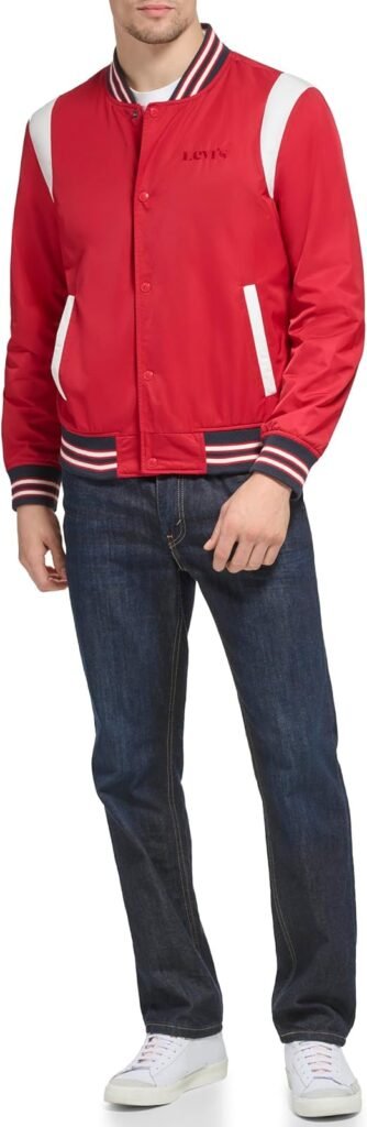 Red is a strong, energetic color. Wearing a red varsity bomber jacket instantly boosts your style, making your outfit more expressive and noticeable. It works great for: