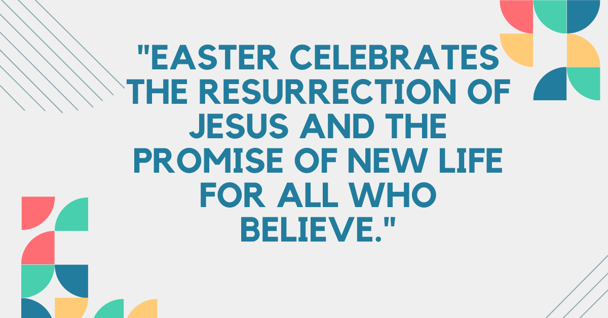 - “Easter celebrates the resurrection of Jesus and the promise of new life for all who believe.”