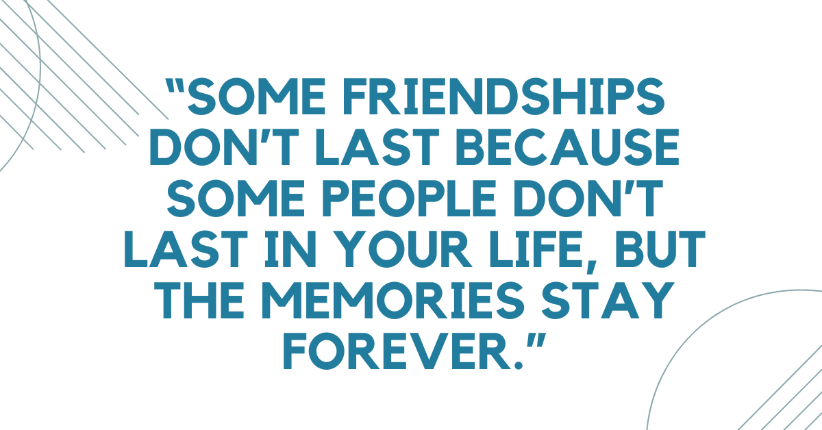 1. “Some friendships don’t last because some people don’t last in your life, but the memories stay forever.”