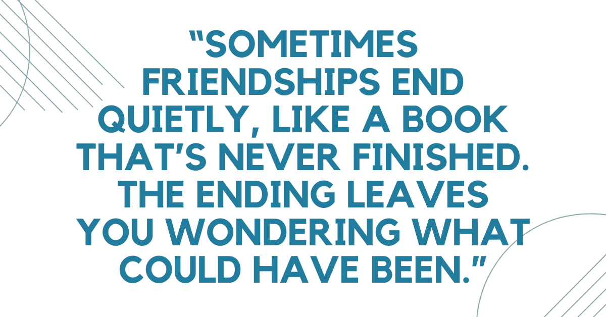 1. “Sometimes friendships end quietly, like a book that’s never finished. The ending leaves you wondering what could have been.”