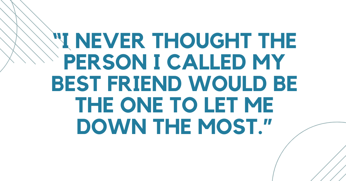 1. “I never thought the person I called my best friend would be the one to let me down the most.”