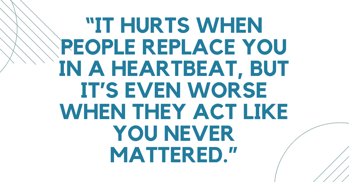 1. “It hurts when people replace you in a heartbeat, but it’s even worse when they act like you never mattered.”