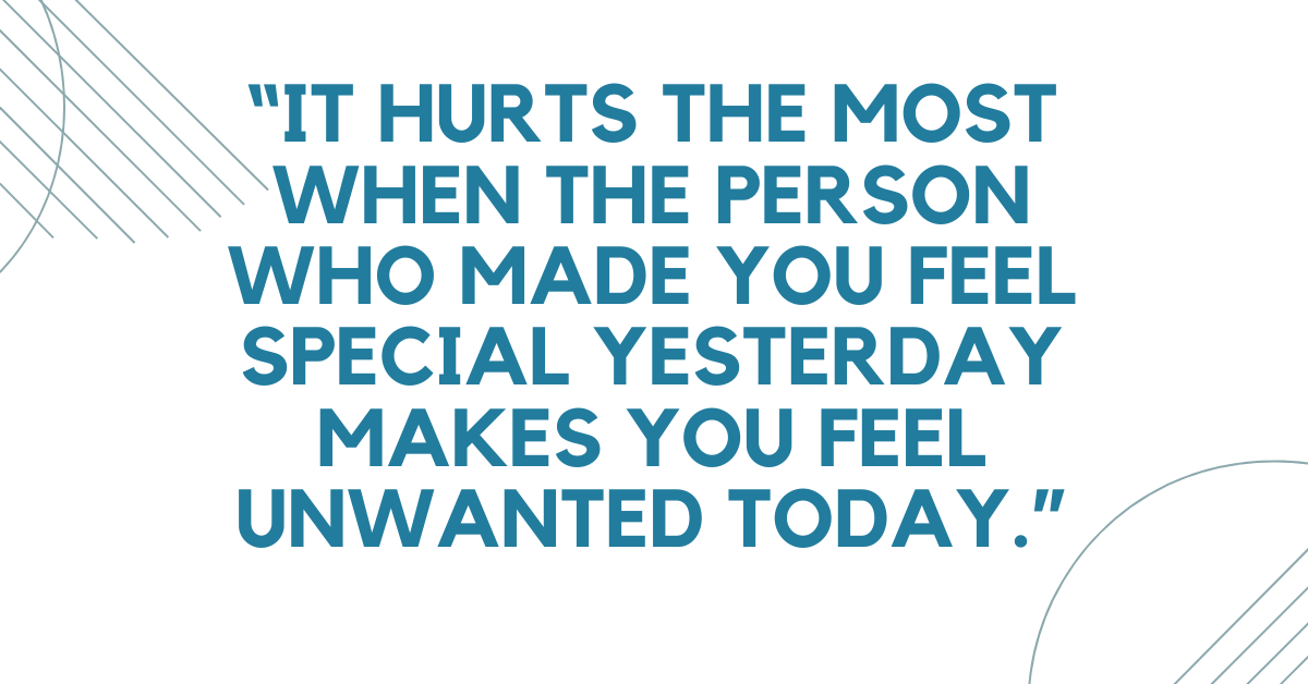 1. “It hurts the most when the person who made you feel special yesterday makes you feel unwanted today.”