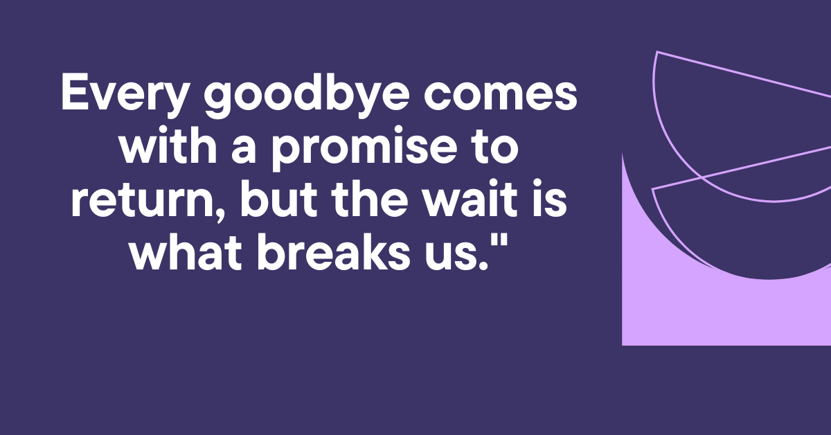 - “Every goodbye comes with a promise to return, but the wait is what breaks us.”