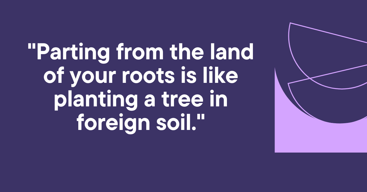 - “Parting from the land of your roots is like planting a tree in foreign soil.”