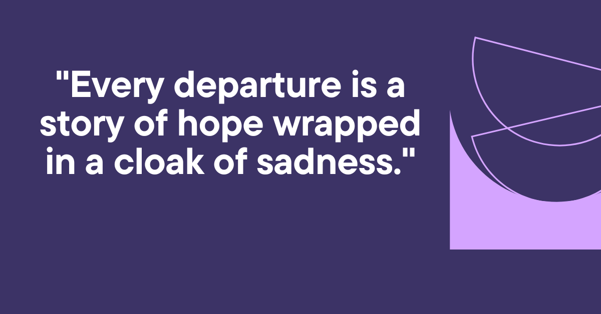 - “Every departure is a story of hope wrapped in a cloak of sadness.”