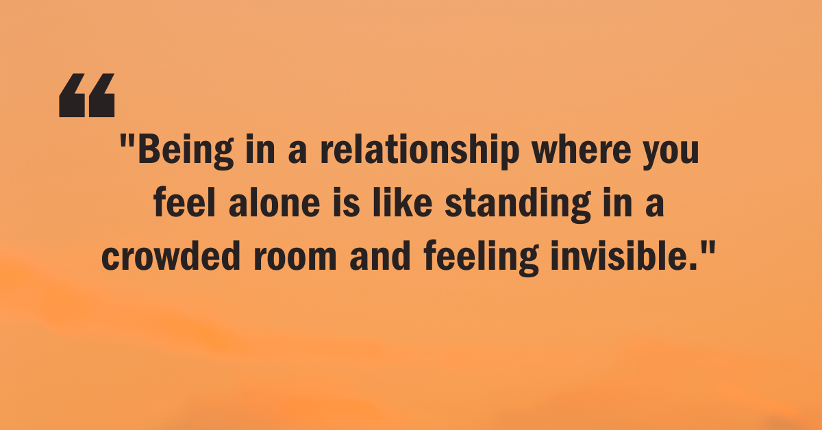 8. “Being in a relationship where you feel alone is like standing in a crowded room and feeling invisible.”