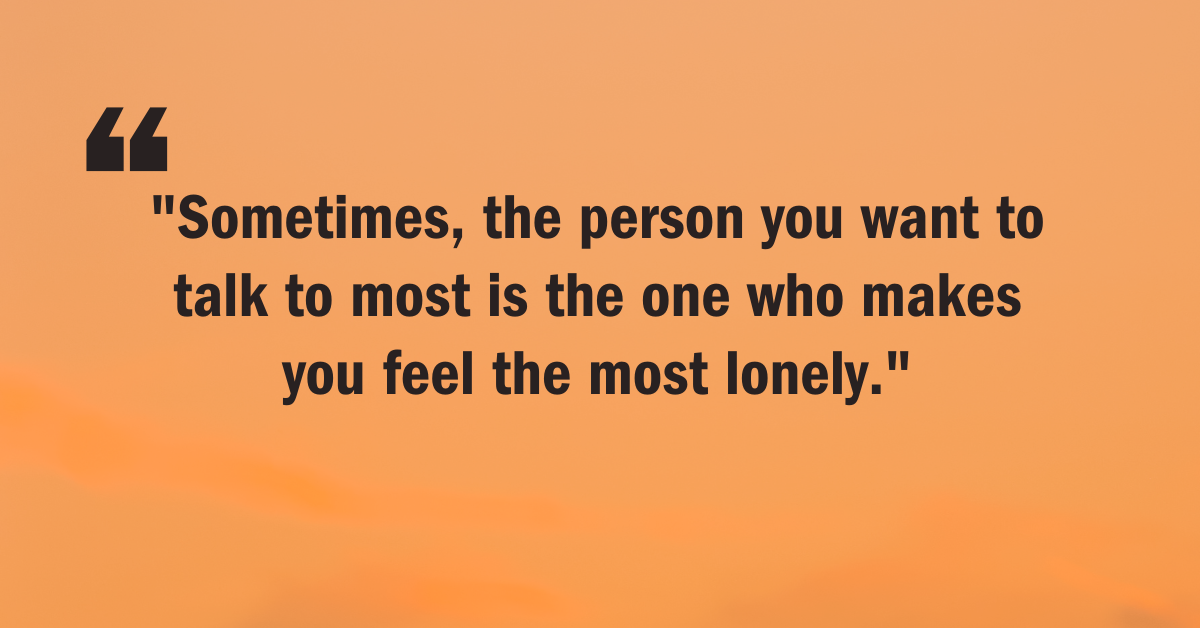 14. “Sometimes, the person you want to talk to most is the one who makes you feel the most lonely.”