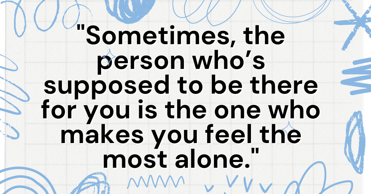 6. “Sometimes, the person who’s supposed to be there for you is the one who makes you feel the most alone.”