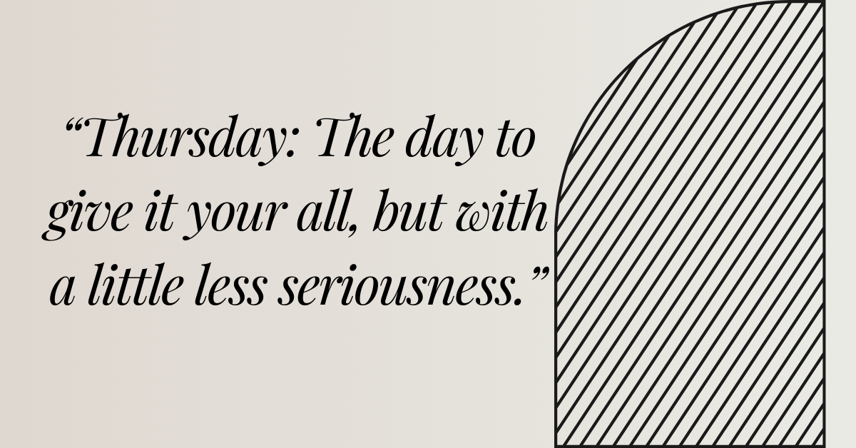 - “Thursday: The day to give it your all, but with a little less seriousness.”