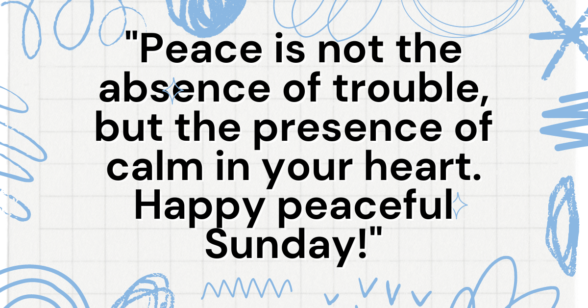- “Peace is not the absence of trouble, but the presence of calm in your heart. Happy peaceful Sunday!”