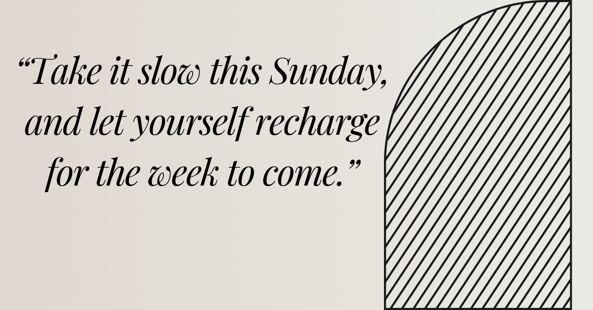 “Take it slow this Sunday, and let yourself recharge for the week to come.”