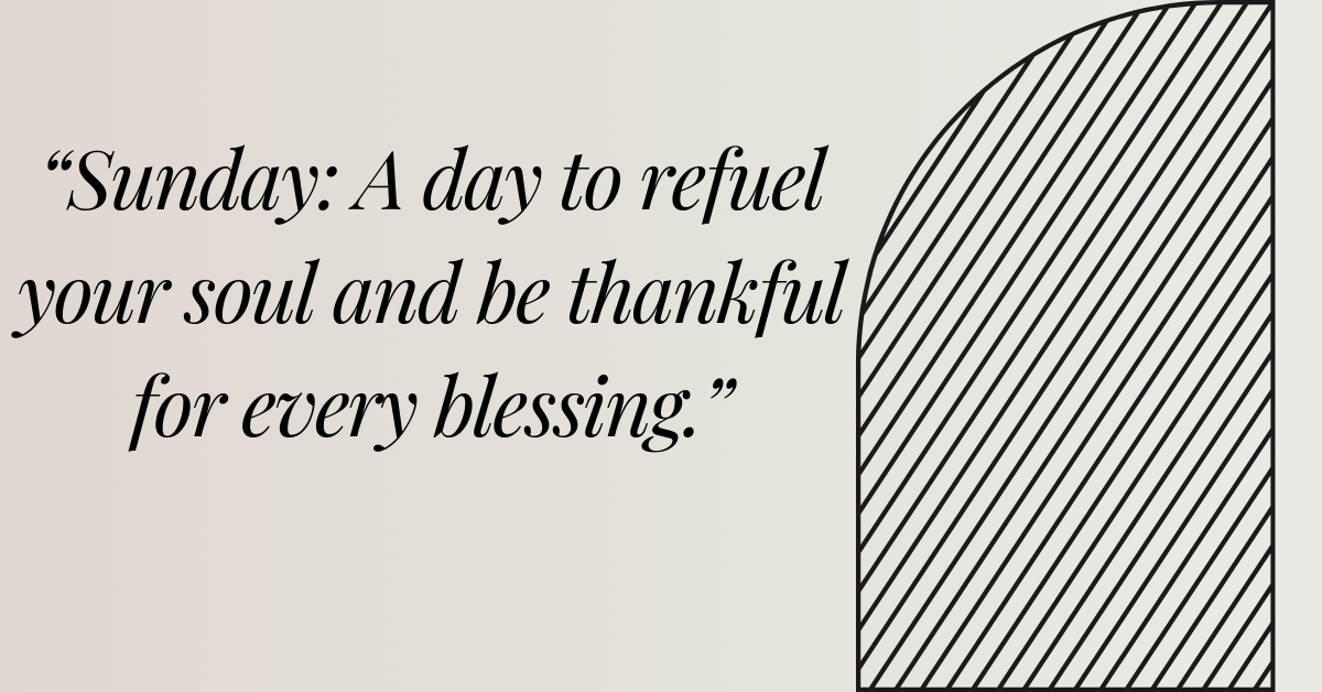 “Sunday: A day to refuel your soul and be thankful for every blessing.”